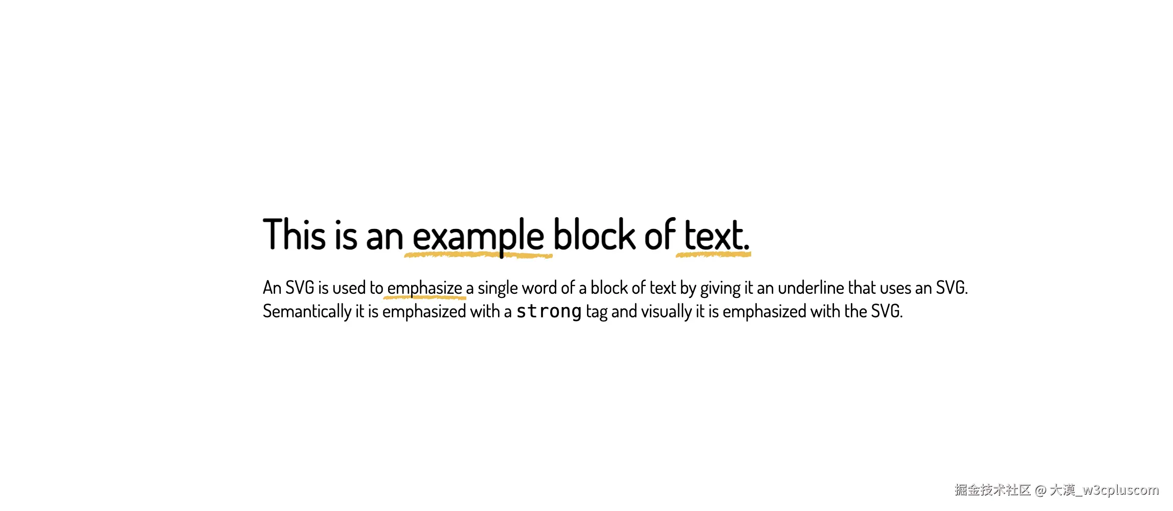 使用clip-path给文本添加下划线效果,可以帮助我们实现很多具有创意的效果,还可以配合CSS的 animation 来实现带有动画效果的下划线。其实,除了上面提到的方案之外,我们还可以在background-image中使用SVG给文本添加很多与众不同的下划线效果。比如:
