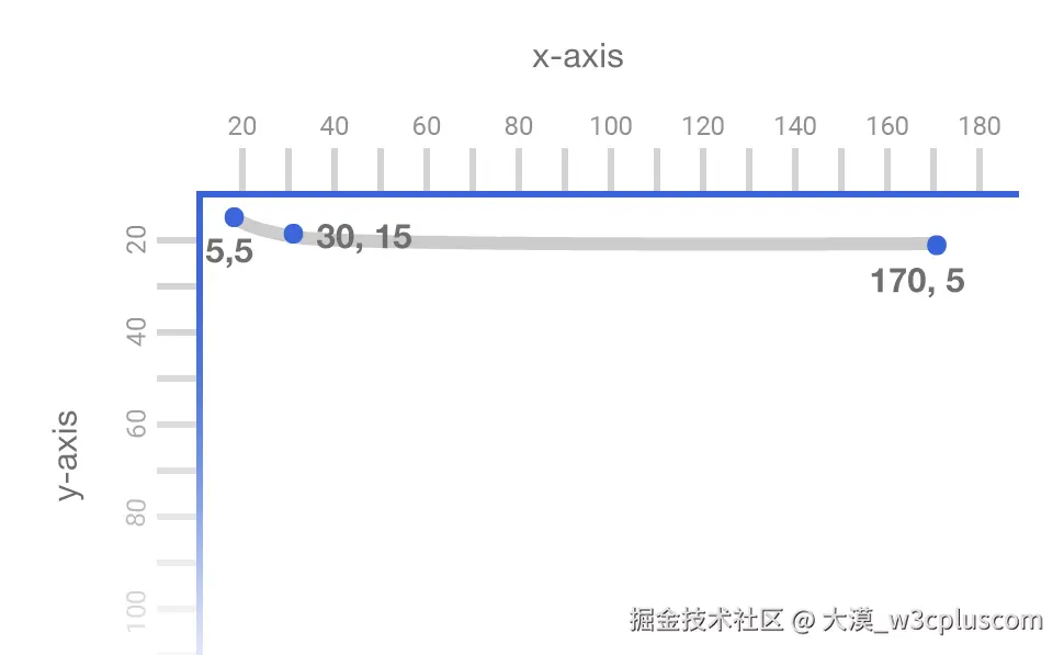可以看出来,坐标2的x轴值发生了变化,由170变成了70。因此线条也就变短了。基于这个原理,可以使用JavaScript来控制这个x值,从而得给路径不同的d数据:
