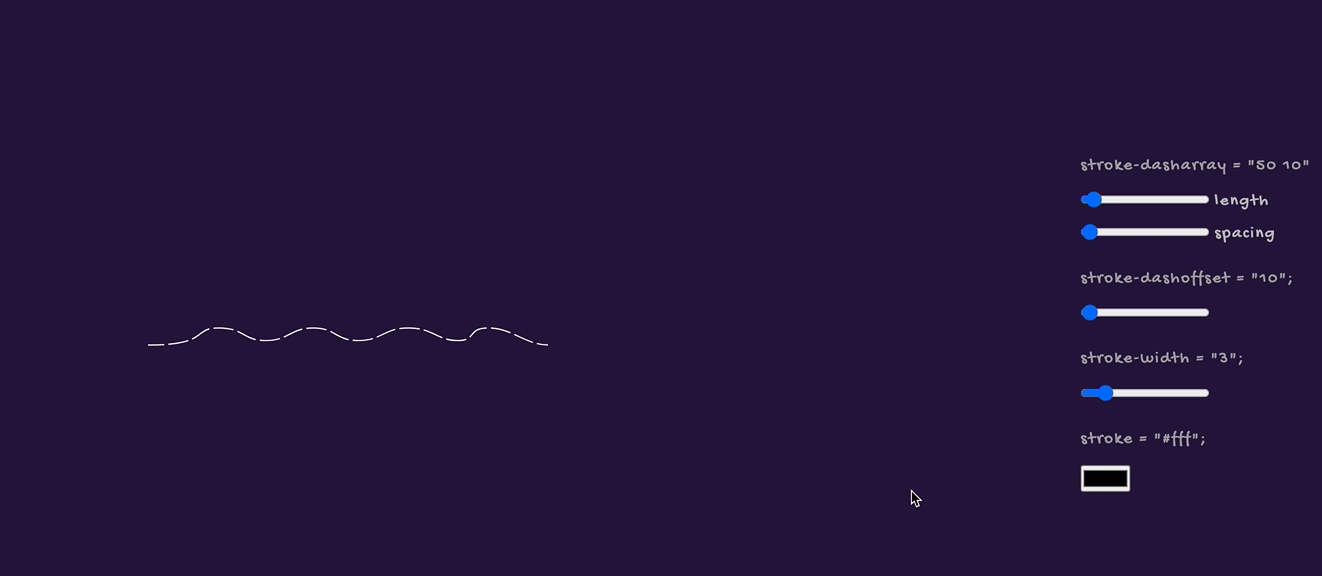 尝试着拖动下面进度条滑块,你可以看到SVG的路径长短将会发生变化: