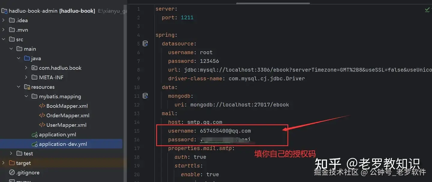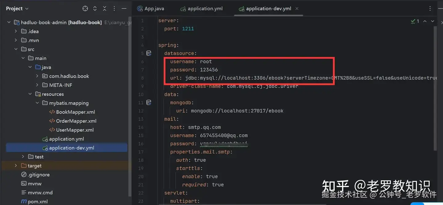 修改数据库信息为你数据库信息,信息在 application-dev.yml 里面