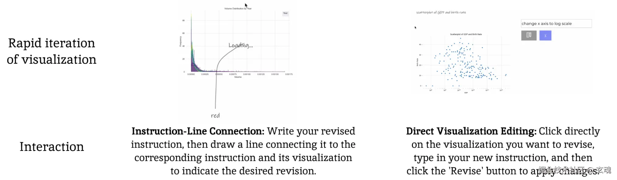 随着大模型技术的发展,自然语言界面(NLI)正作为一种可行的交互替代方案出现,允许用户通过自然语言来指定编辑操作,来进行可视分析。然而,自然语言界面放弃了传统GUI的优势:自由探索和重复编辑的能力,并能够看到即时的视觉反馈。因为通过语言与系统进行交互,往往需要等待一些时间,才能看到结果。