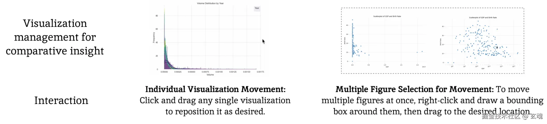 - 复杂界面的挑战:数据分析仪表板平台(如Tableau)虽然设计用于支持并行数据显示以进行比较分析,但它们的多功能界面复杂性可能会限制所需的空间和灵活性,这对于“思考空间”(space to think)来说是不利的,这在探索性视觉分析中是必需的。这种复杂性可能会阻碍探索性视觉分析所需的速度和迭代性质。