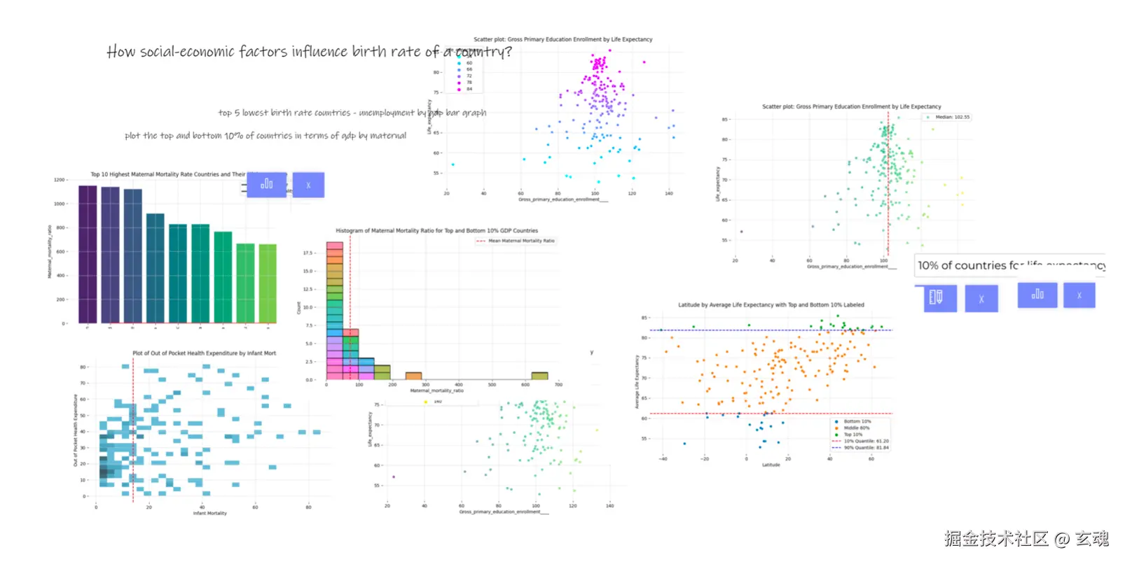 - 线性和块状结构的限制:像Jupyter Notebook这样的交互式工具,虽然结合了代码、数据和可视化,但它们的线性和块状结构不利于快速迭代和比较假设测试结果。这种结构限制了用户在探索性数据分析中进行并行探索和比较的能力。