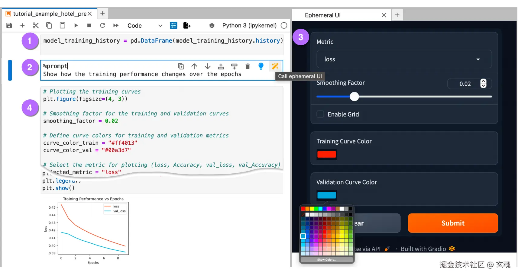 提供上下文内的支持:将UI脚手架集成到JupyterLab界面中,使用户能够在他们正在工作的代码上下文中获得支持。