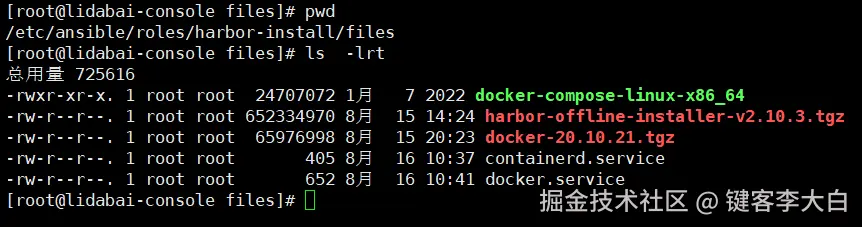 因为考虑到企业内网环境,提前将对应版本的安装包下载好放到roles/harbor-install/files/目录下。