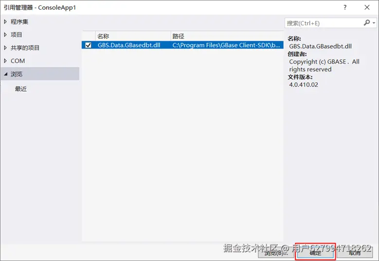 2、添加GBS.Data.GBasedbt.dll引用