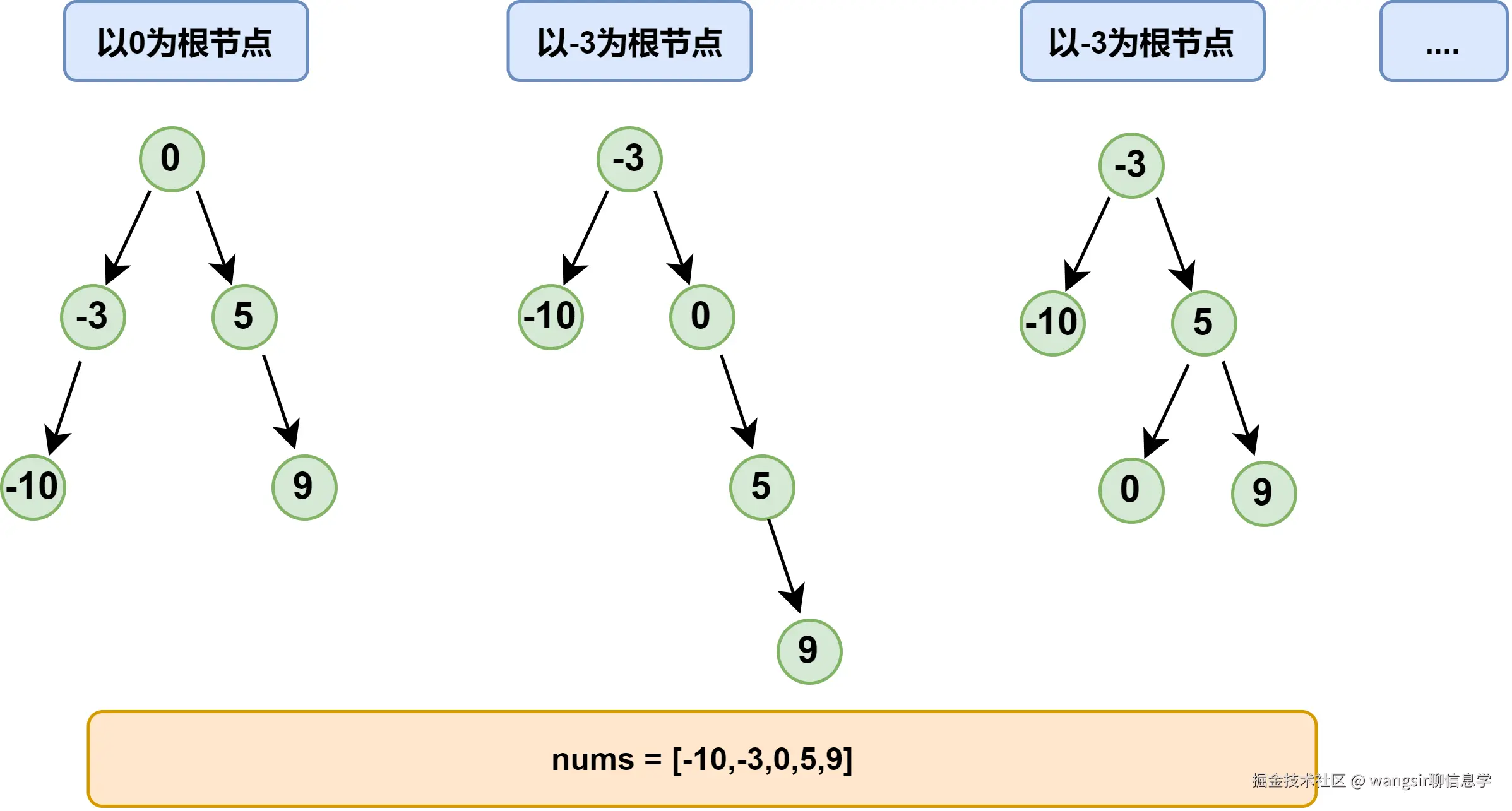 解释:[0,-10,5,null,-3,null,9] 也将被视为正确答案: