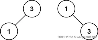 解释:[1,null,3] 和 [3,1] 都是高度平衡二叉搜索树。