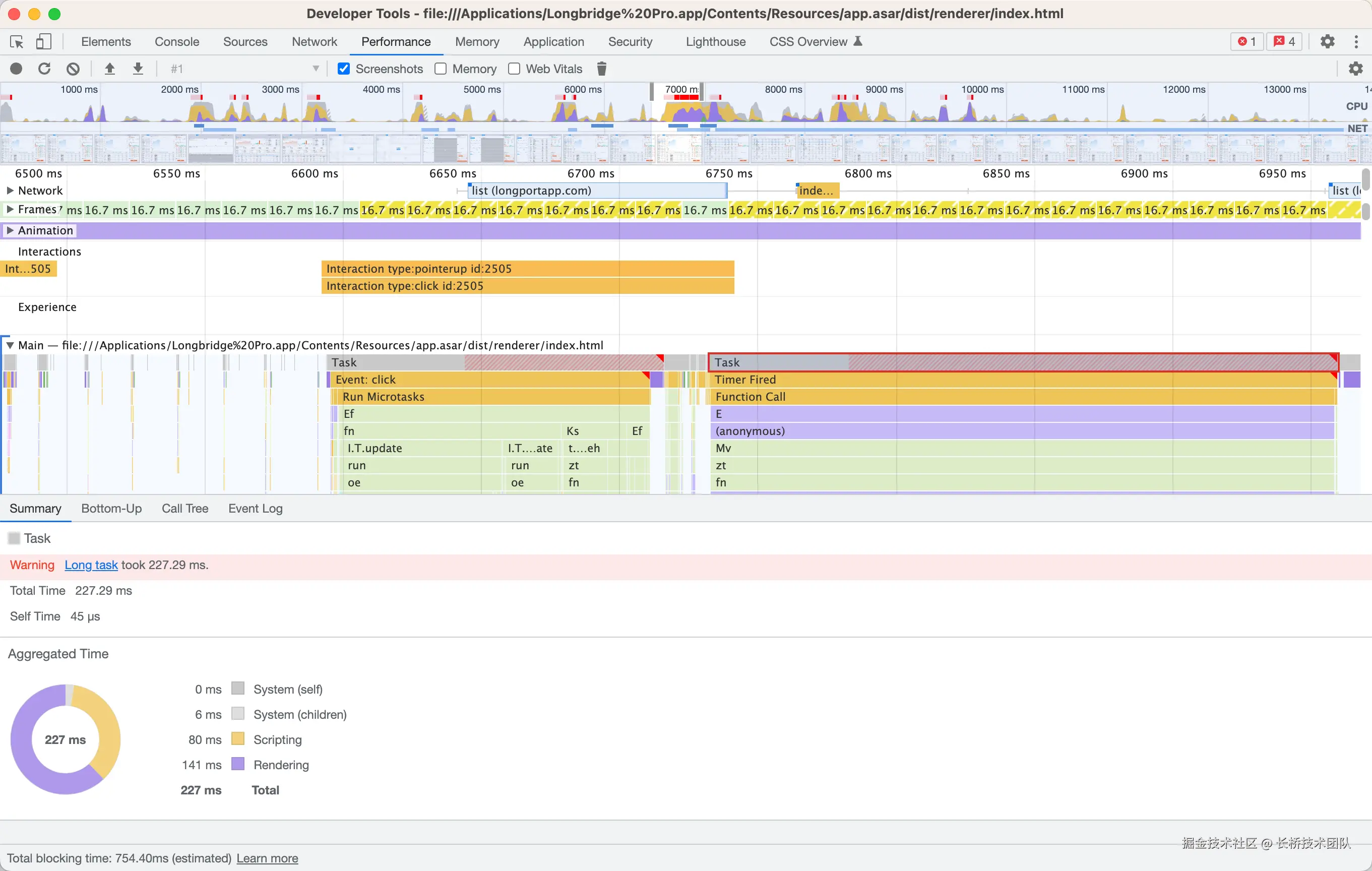 如下图,通过开发者工具的 Performance 监测可以观测到问题: