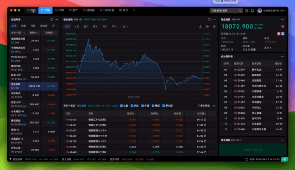 在 Longbridge Pro 中,使用了类似浏览器的结构,给用户提供了灵活的自定义面板布局,并且提供了丰富的组件可供用户使用。