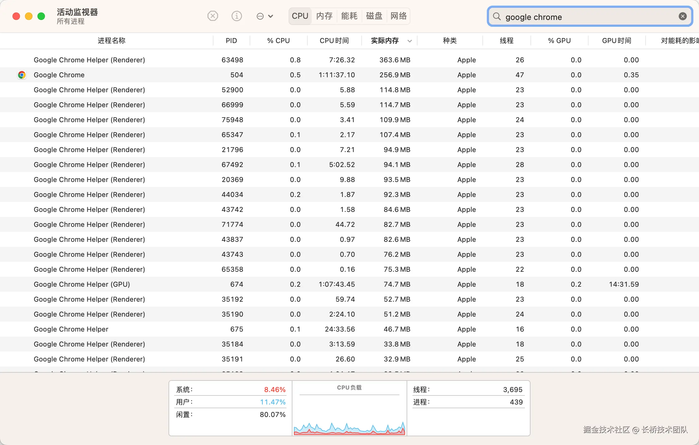经测试,每启动一个 BrowserView 就会多增加一个渲染进程,观察了一下 Chrome 的表现,他的每一个 Tab 也是一个渲染进程(如下图)。