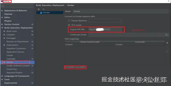 重启后配置docker,连接到远程docker服务。从file->settings->build,execution,deployment->docker打开配置界面。
