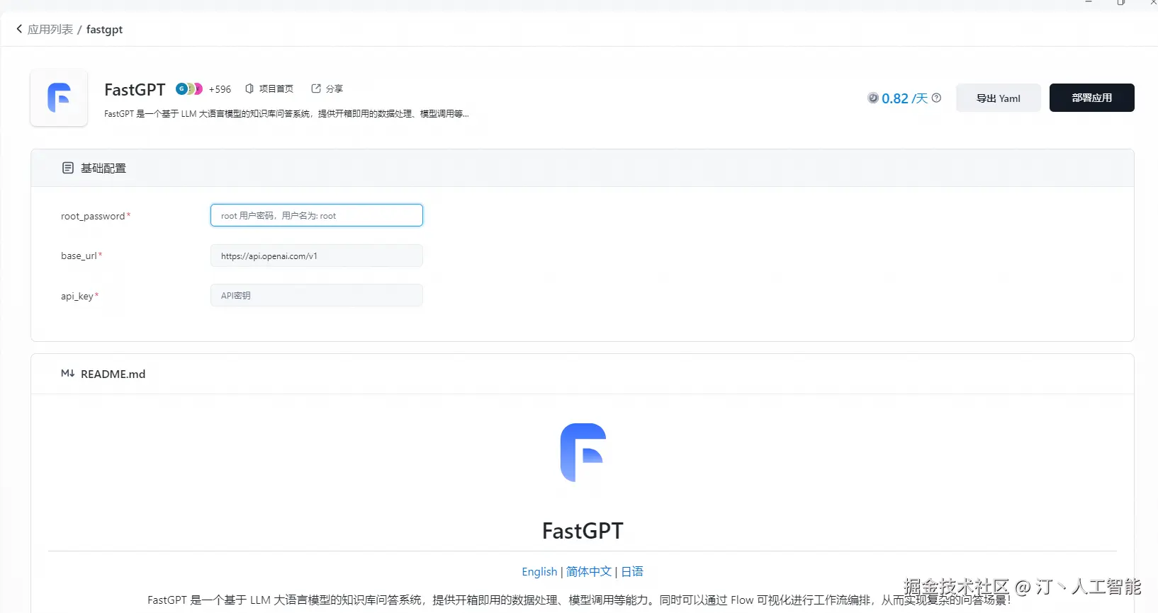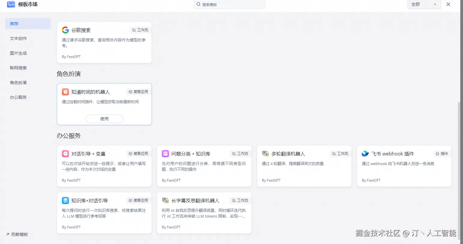 登录FastGPT直接就可以使用,模板市场有一些例子