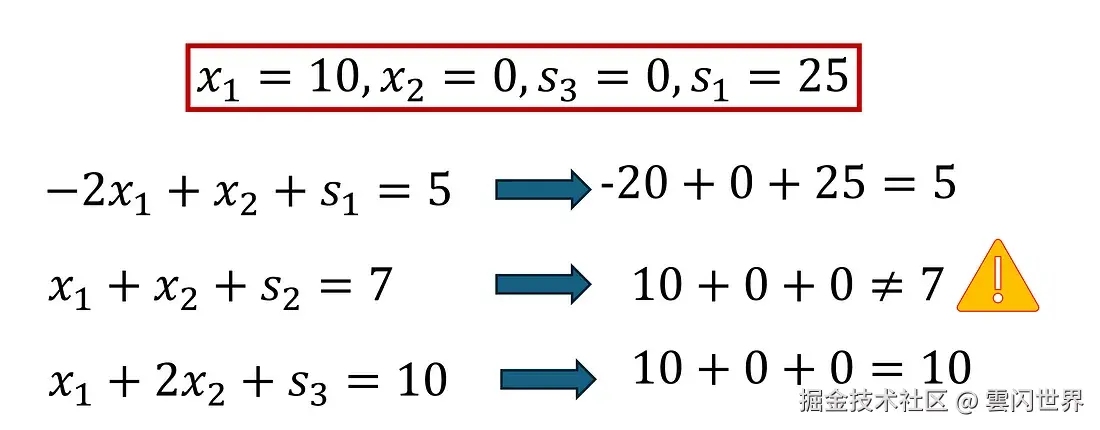 让我们将这些 X₁ 和 X₂ 值代入所有线性约束中: