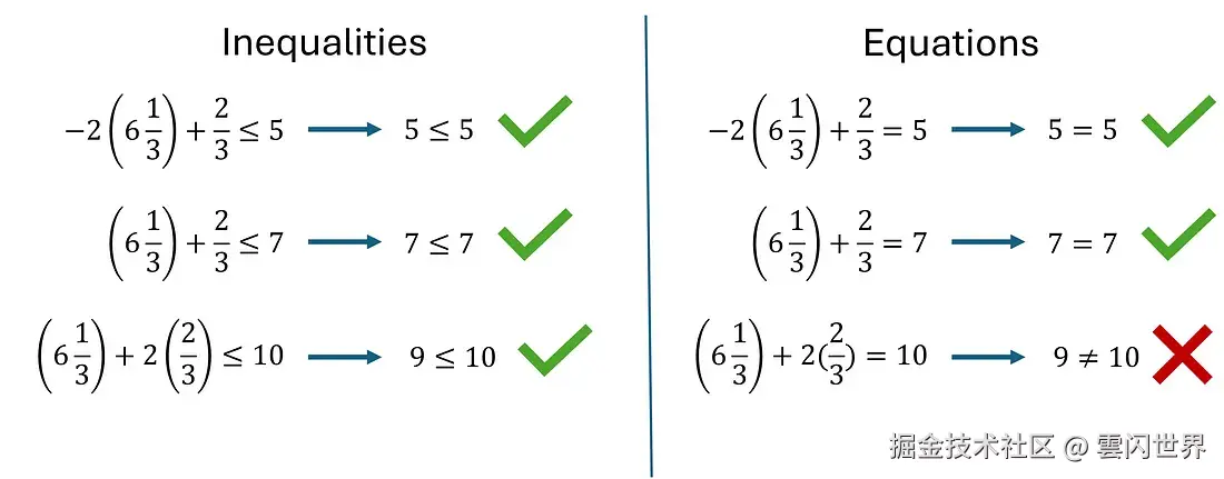 好的,现在看看为什么我们可以消除不平等而获得平等——但我们有一个大问题。让我们通过研究特定角点的数学来探讨这个问题: