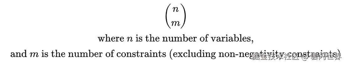 为什么需要单纯形法 在本系列的第一篇文章中,我们讨论了线性规划的属性如何使其仅将约束的角点视为潜在的最优解。这是一个非常强大的功能,可将无限的解空间缩小到有限的解空间。在我们回顾的例子中,我们只有几个约束和几个变量——我们甚至手动解决了其中一些!看了一些简单的例子后,人们可能会认为,采用穷举、蛮力(查看每个角点)的方法来寻找最优解就足够了。 虽然对于较小的 LP 问题,蛮力法是可行的,但随着问题变得越来越复杂,角点的数量可能会激增。角点总数(包括可行和不可行)取决于 (1) 问题中的变量数量和 (2) 约束数量。