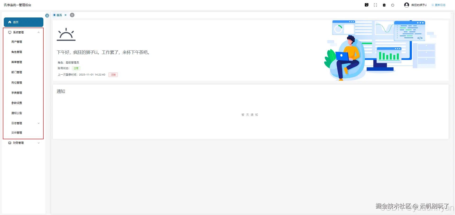 上图中左边红色框中的系统管理部分,是继承自ruoyi系统框架,其相关的基本功能都有。