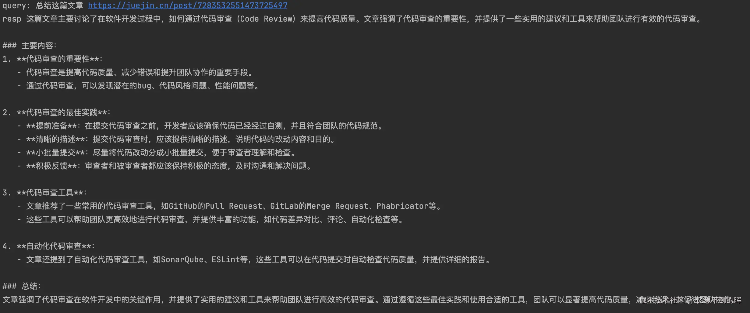 query = "总结这篇文章 https://juejin.cn/post/7283532551473725497"