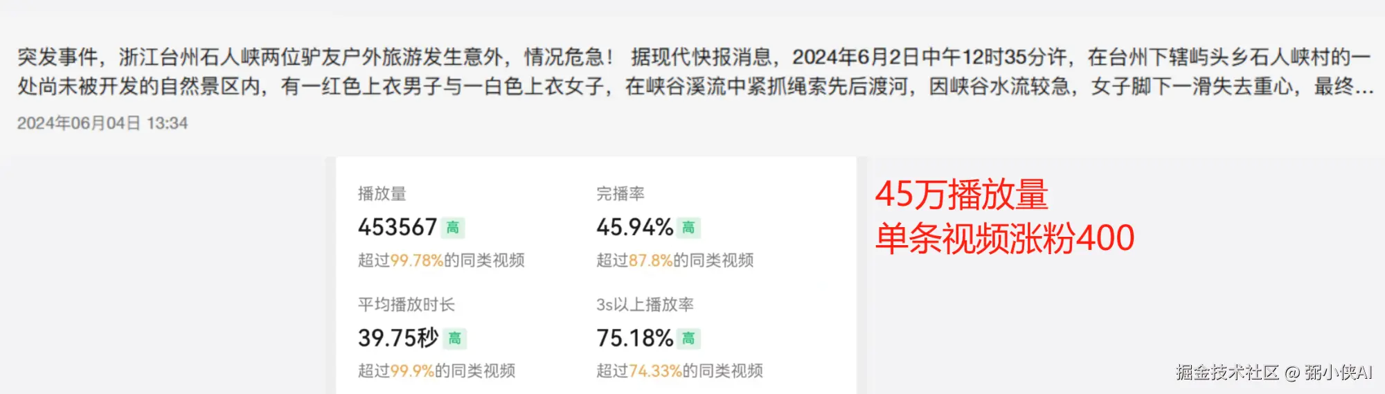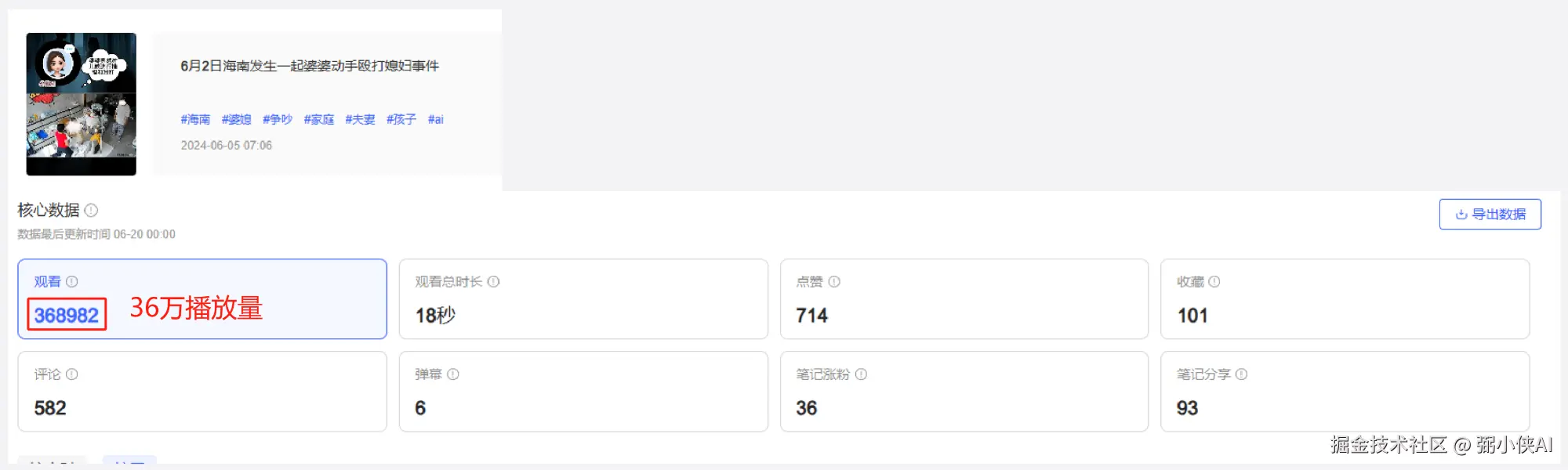 测试分别是两个主流的短视频平台,内容均由AI生成,内容定位都为社会类内容,具体详情大家先看看小侠后台的截图。