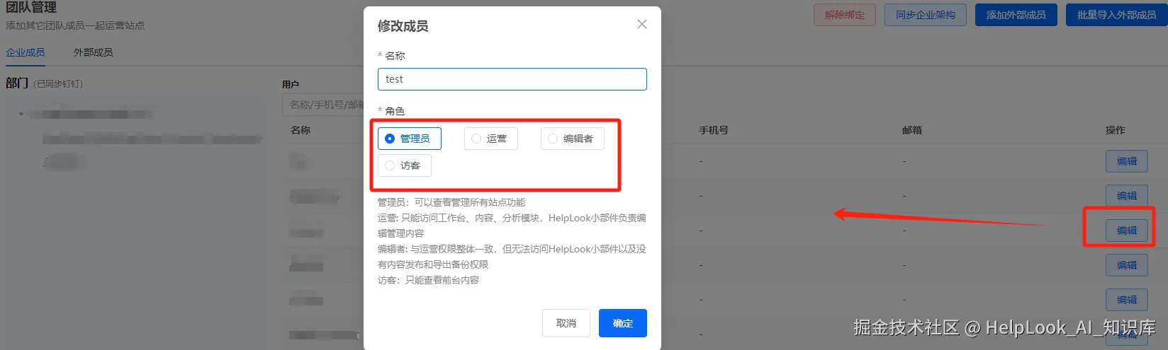 HelpLook还能轻松实现与钉钉、企微等组织架构的无缝集成。企业可以同步组织架构信息至知识库后台,为不同部门、不同角色的成员设置不同的管理权限。这种基于部门、角色的权限分配方式既保证了内容的编辑与管理效率,又确保了信息的安全可控。