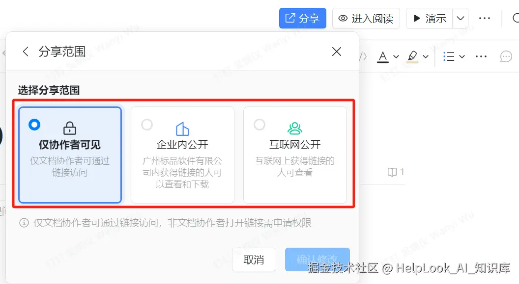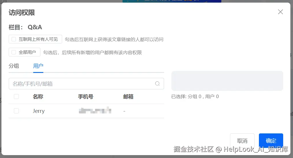 为此,HelpLook认真听取用户意见,对 “访问权限” 功能进行了全面革新。现在,您可以在同一站点内轻松设置多种访问权限,实现混合访问模式。不仅简化了操作流程,还显著提升了信息管理的灵活性和安全性。