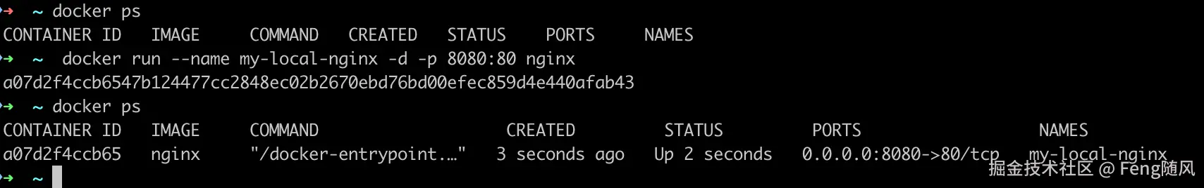 docker run --name my-local-nginx -d -p 8080:80 nginx