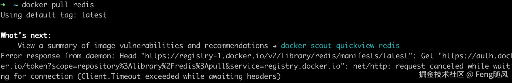 这类情况一般是网络问题,最近Docker似乎又可以访问,不如多pull几次试试