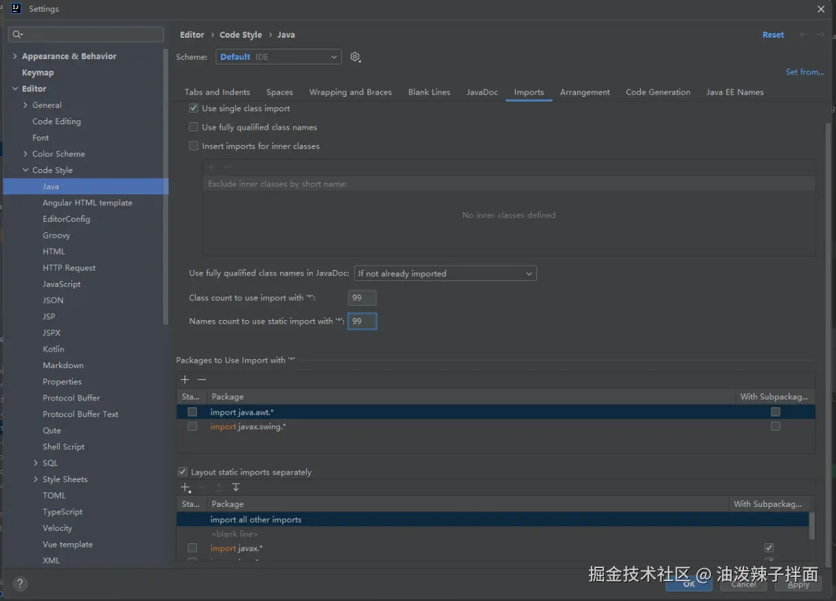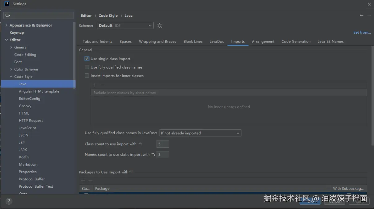 下图这个是默认的配置,如类的类引入个数是5,而静态引入是3。