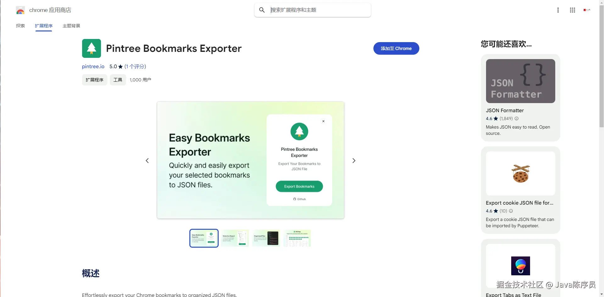 安装地址:https://chromewebstore.google.com/detail/pintree-bookmarks-exporte/mjcglnkikjidokobpfdcdmcnfdicojce