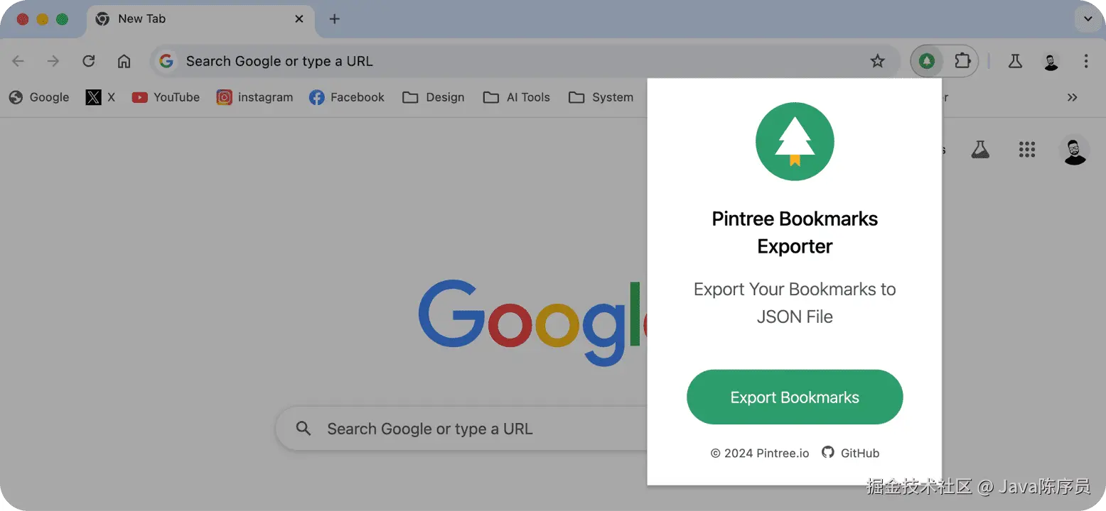 通过前面的内容,我们知道 pintree 只需要一个 JSON 文件,就能搭建出一个导航网站。因此我们可以将浏览器中收藏的书签导出成 JSON 文件,再生成一个静态导航网站!