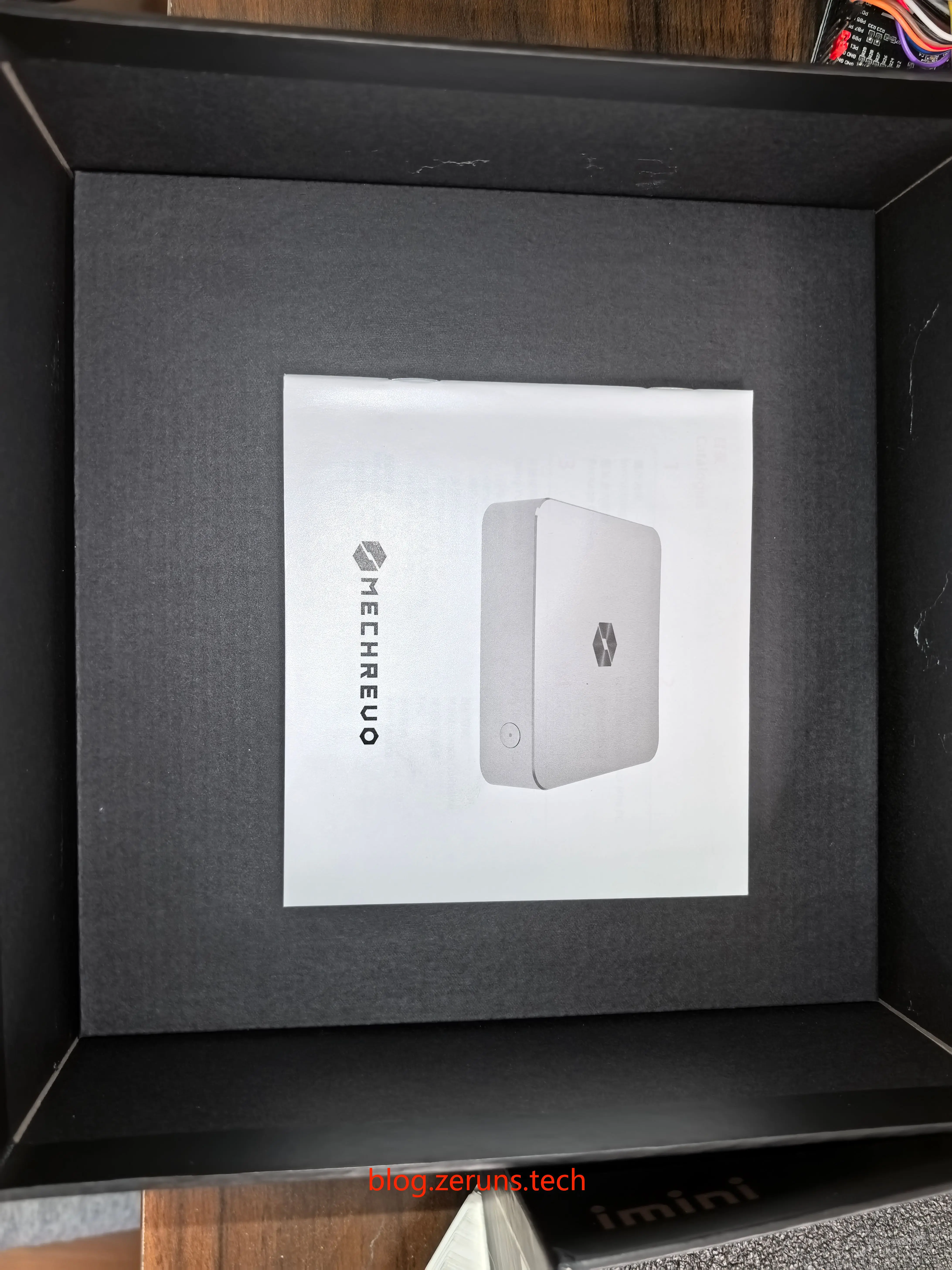这款产品采用黑色的包装盒,四四方方,表面用金色刻线出了机械革命的LOGO式样,还有imini的型号标识。