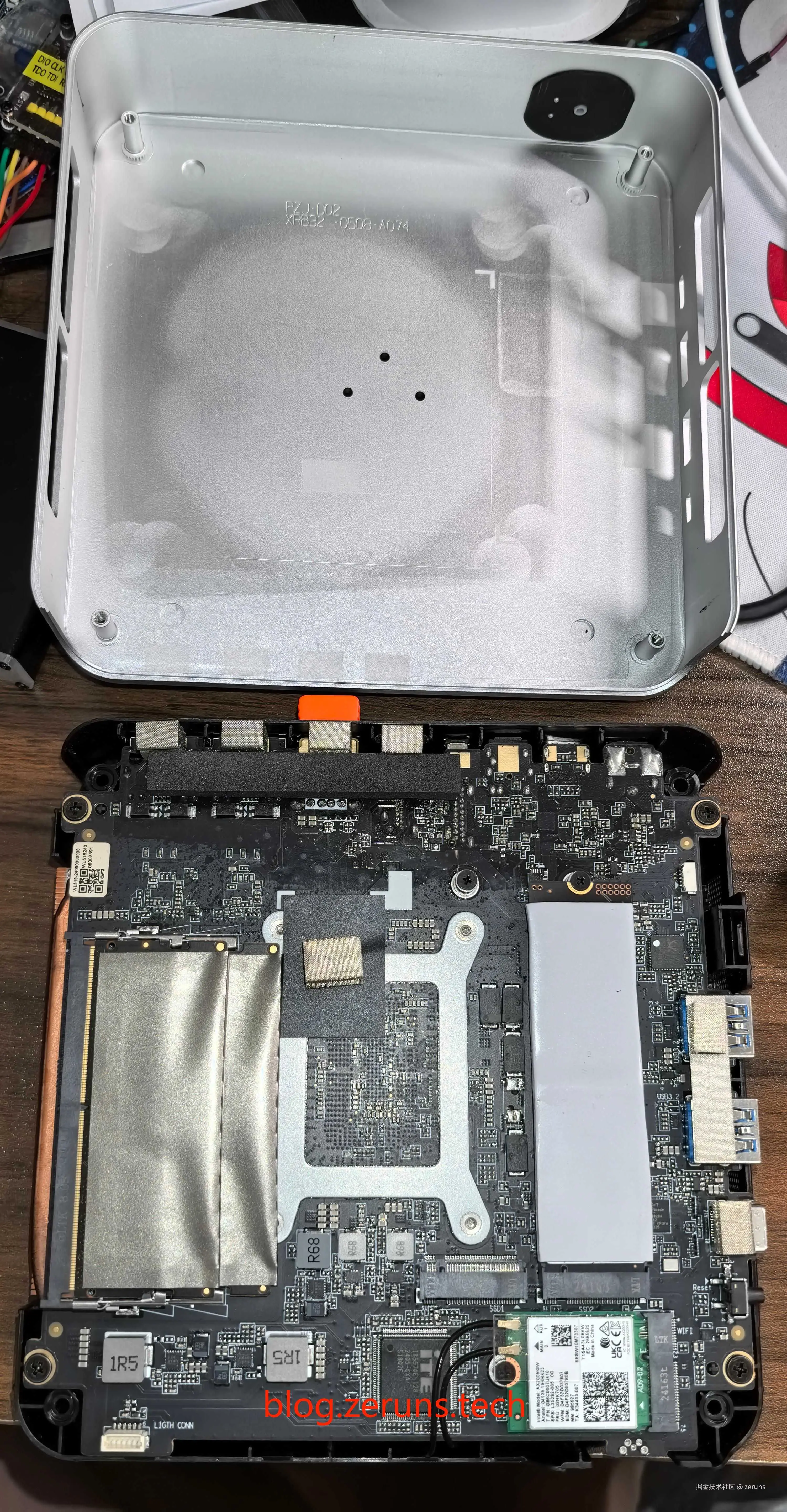 有线网卡芯片被散热器挡住了,从侧边隐约可以拍到,是瑞昱的RTL8125BG芯片,2.5G网卡芯片。