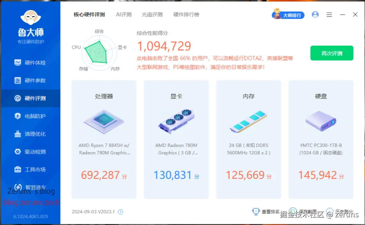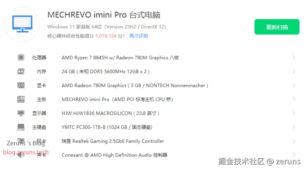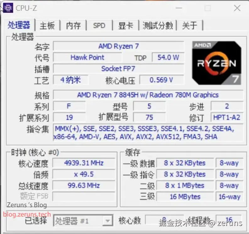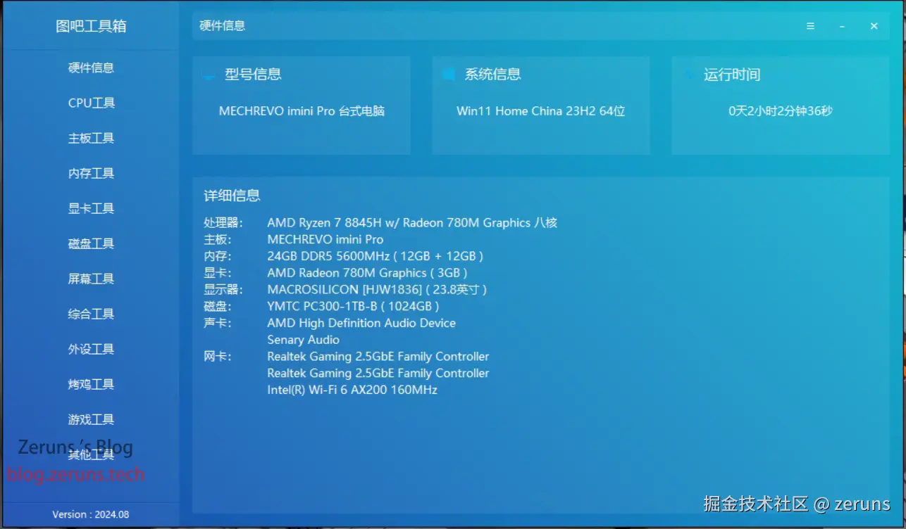 - CPU:AMD 锐龙7 8845H(8核16线程,主频最高5.1Ghz)