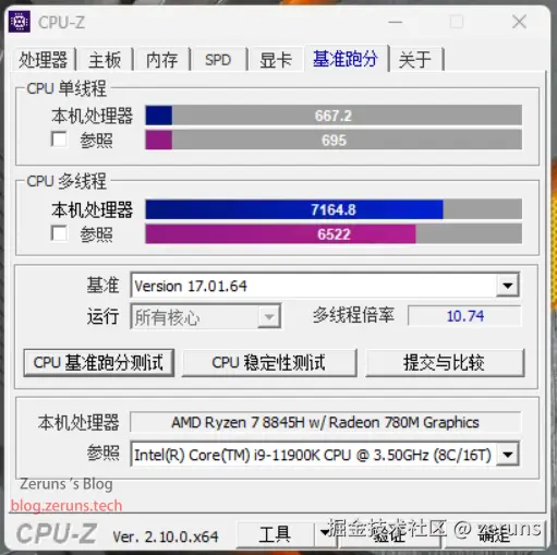 CPU-Z下载地址: url.zeruns.tech/cpuz
