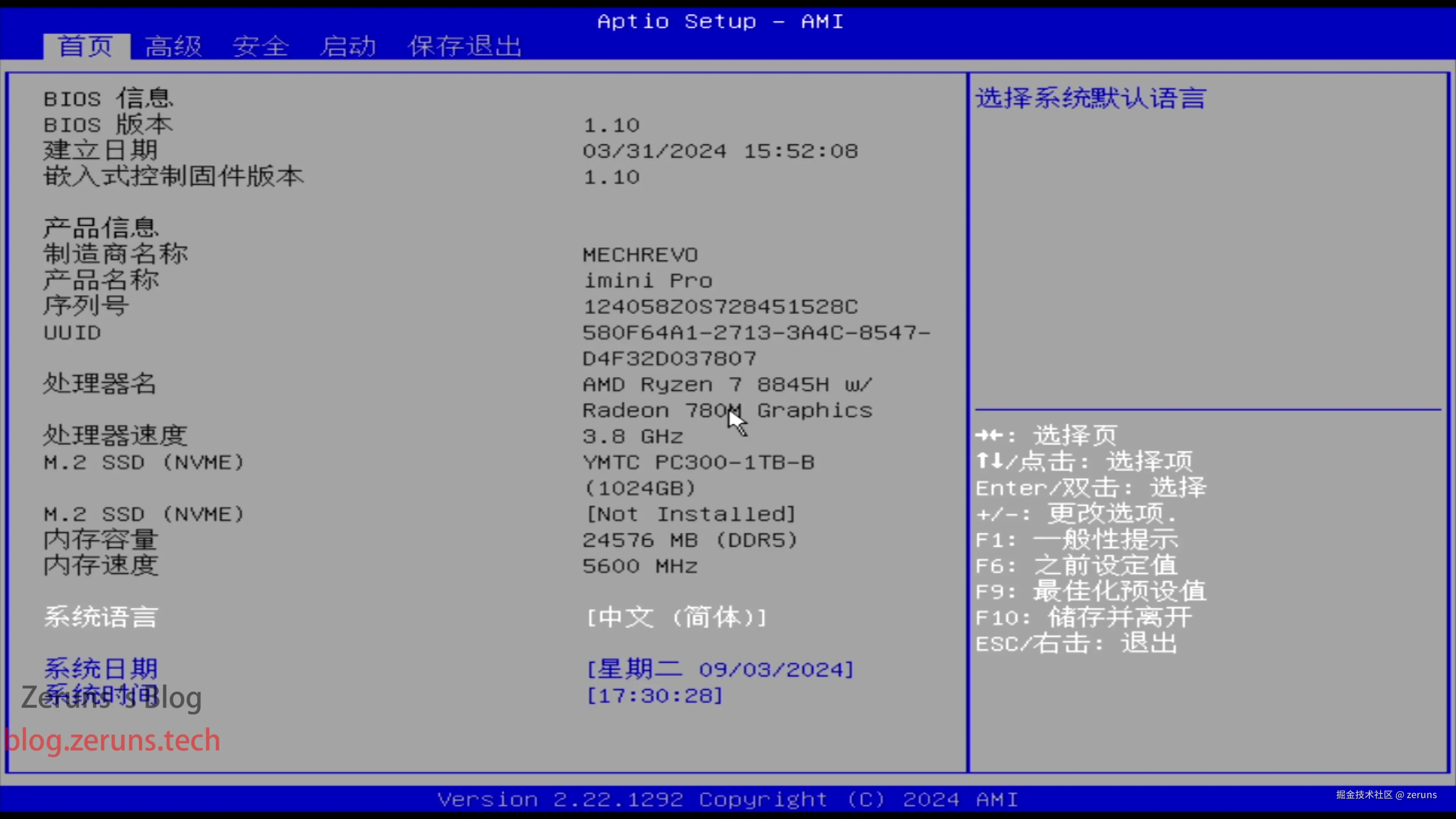 开机长按F2键可以进入在迷你主机领域少见的中文BIOS界面,在高级设置中可以设定虚拟显存的容量,最高可以调到8GB,实现16+8的内存与显存分配,在一些游戏中不怕爆显存了。