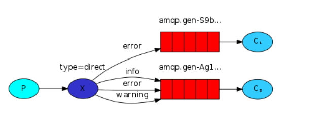 X表示交换机、红色表示队列。