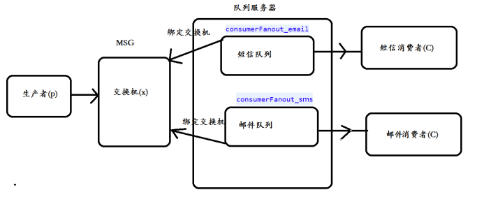 这时就可利用发布/订阅模式将消息发送到转换机(EXCHANGE),声明两个不同的队列(邮箱、手机),并绑定到交换机。这样生产者只需要发布一次消息,两个队列都会接收到消息发给对应的消费者: