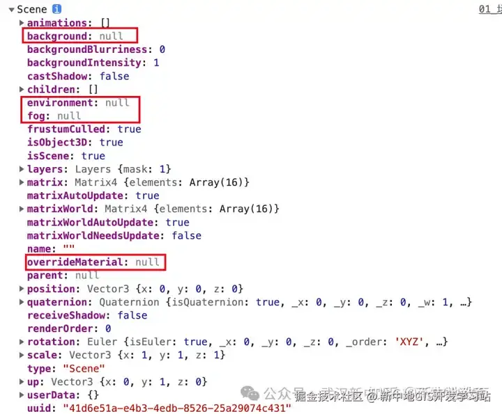 在threejs中, Scene是一个对象. 主要属性