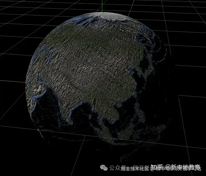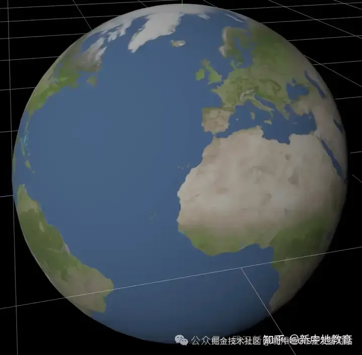 世界地图的图片包裹到球体上就可以模拟出地球的效果 -