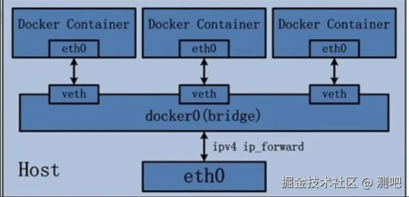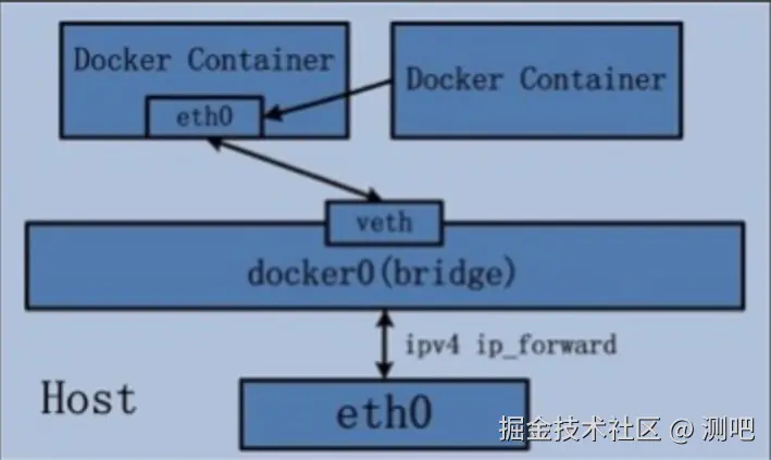 - 使用bridge模式新创建的容器,容器内部都会有一个虚拟网卡,名为eth0,容器之间可以通过容器内部的IP相互通信。