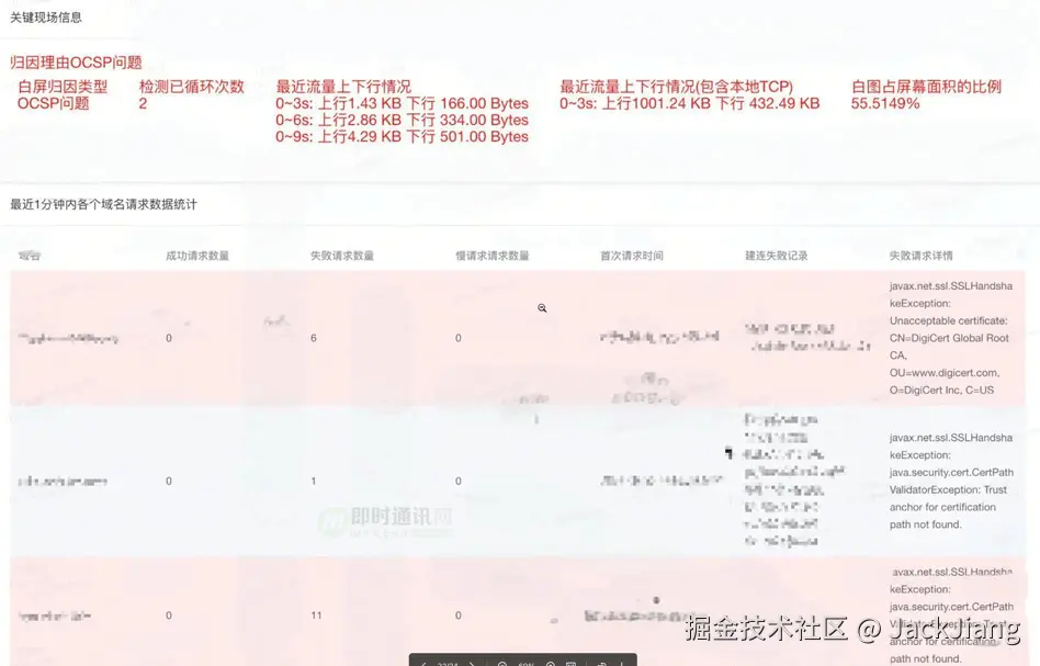除了建连阶段的问题外,TLS等证书认证问题上也有较多的用户反馈,同时白屏平台也有较多类似的错误。