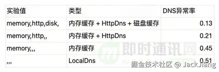 不同配置下的DNS异常率对比: