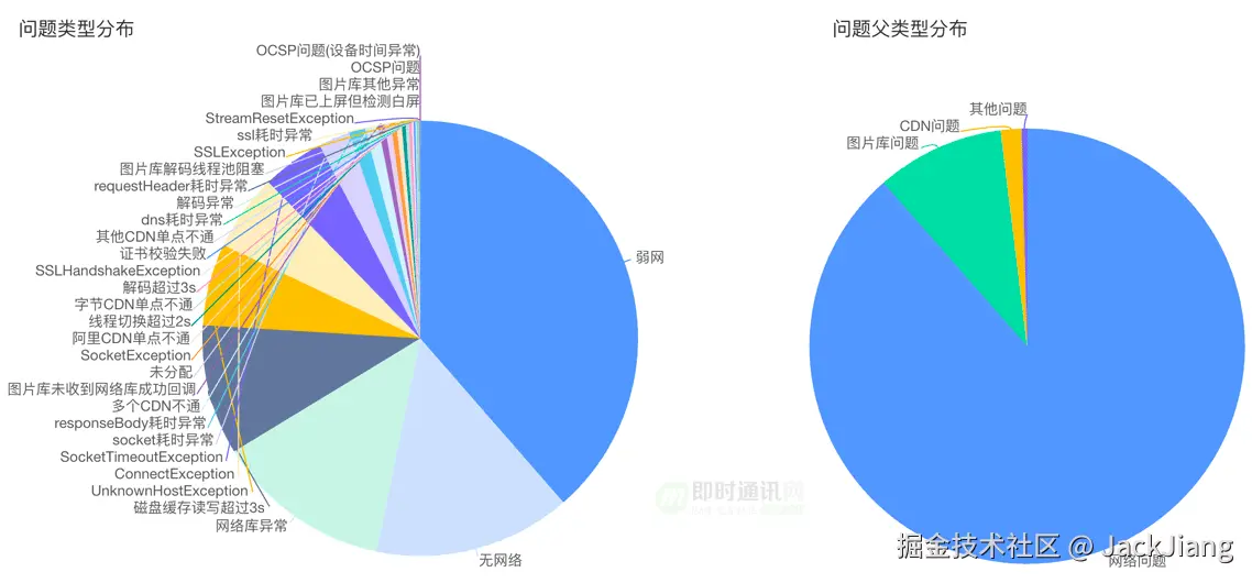 网络异常导致的图片白屏问题,往往和当时的环境有关,例如用户连的WIFI不支持IPv6但是DNS返回的大部分是V6的IP等,此时仅靠几条带有SocketTimeoutException的网络日志根本无法排查出问题的根因,就如同ANR问题需要火焰图一样,白屏问题同样需要一套完善的监控体系来记录问题现场的信息,从而分析问题根因。