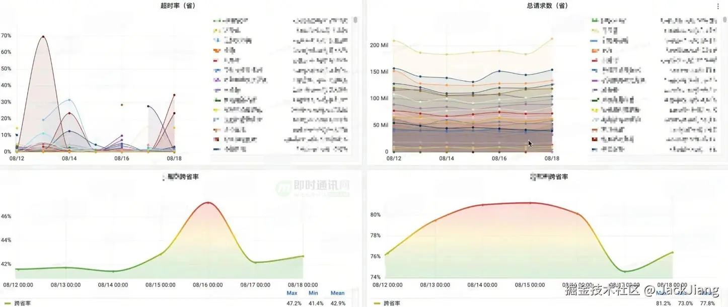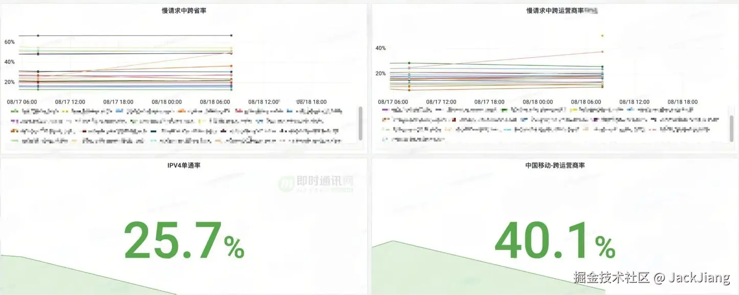 在白屏监控平台侧,我们经常能够发现用户侧的CDN单点问题,往往存在跨省、跨运营商调度的情况,或者是单节点的高负载响应超时。故我们基于此情况记录了端侧的本地IP&CDN远端IP,建设了CDN质量大盘。