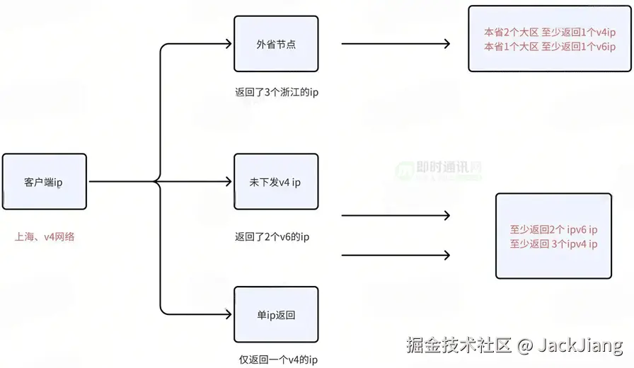- 1) 针对v4 IP本省2个大区至少返回2个IP;