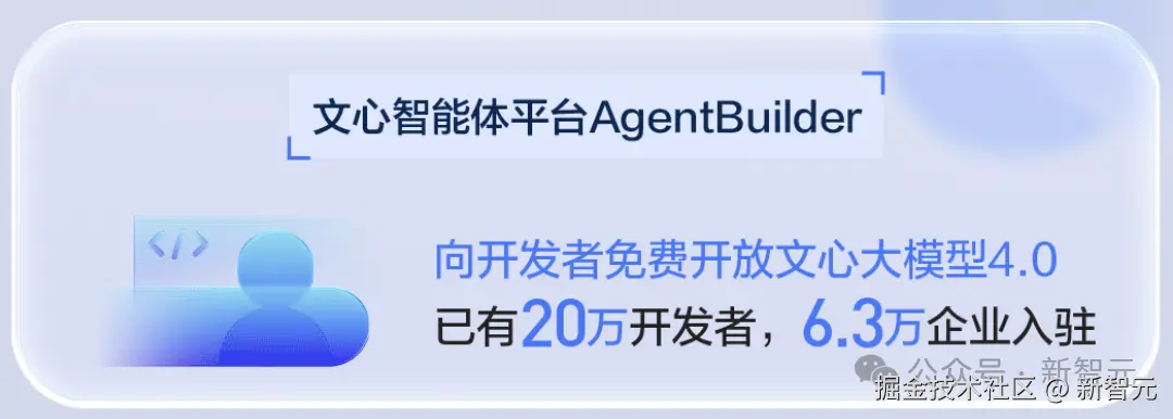 在百度文心智能体平台 AgentBuilder 上,已有 20 万开发者、6.3 万企业入驻,在百度开发智能体的商户已达 1.6 万家。