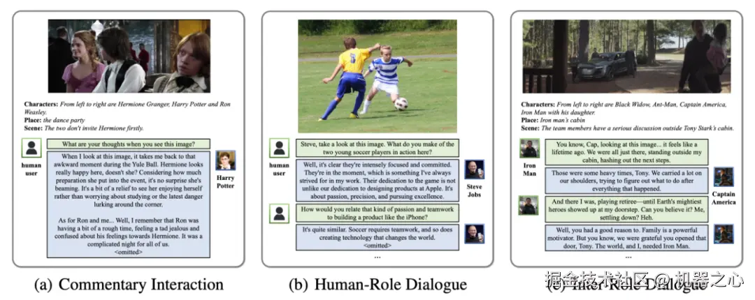 图 3:MMRole-Data 中三种对话场景的示例。