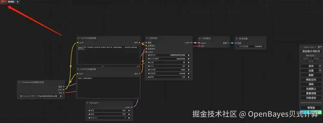 - 切换语言后,点击左上角的文件夹图标选择所需工作流。