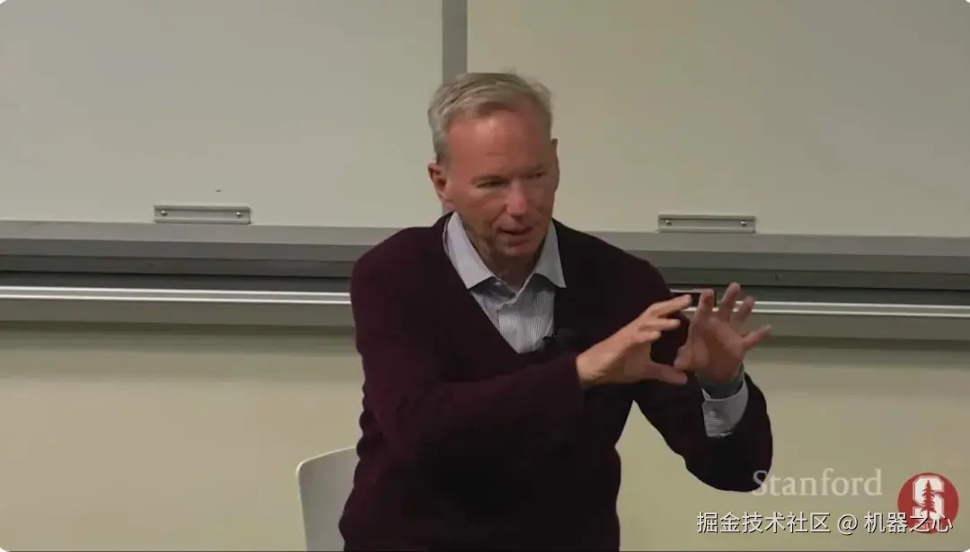 **布林:**那我还是有害怕的事的。现在语言模型的起点,要追溯到 6 年前还是 8 年前哪篇 Transformer 论文。但是这些论文作者全部都从谷歌离职了。恭喜他们!当时我们太胆小,都不敢部署 Transformer。