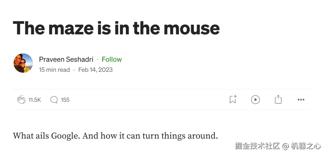 AppSheet 创始人 Praveen Seshadri 宣布离开谷歌,他的博客称,公司已迷失方向,员工被困在系统里。